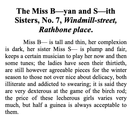 I feel it's very important you know that in the 1700s there used to be an annual printed guide to the sex workers of Covent Garden, like Platter's Wine Guide for boobs.