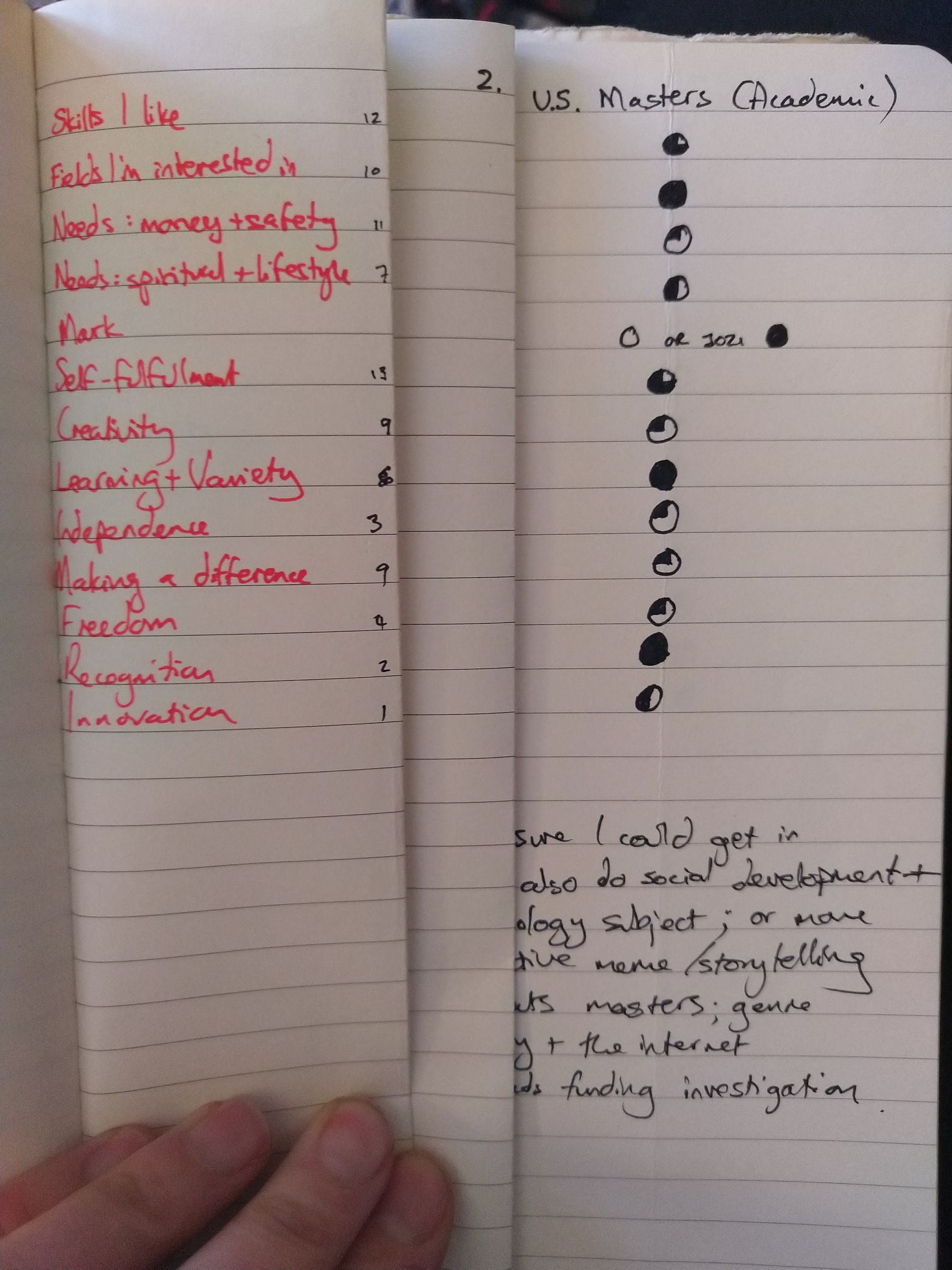 Like many people, I had a dramatic quarter-life career crisis in my mid-20s. I hated my job and I wanted to do something else. I went through all the steps above: I found alternative choices, I filled a whole notebook with research about my options. I invented an elaborate system where I rated each option against a list of weighted priorities, hoping that I could just get a score that would tell me what I should bloody do with my life. TELL ME WHAT TO DO, NUMBERS!