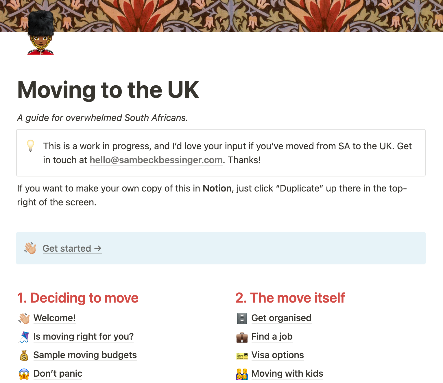 Moving countries is bloody hard and there's no guidebook, but there could be! Let's build one together. Hit reply!